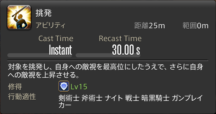どのタンクも遠隔攻撃を当てると少なくとも威力7000くらいのダメージを与えた時と同じくらいのヘイトを得られます。黒がゼノを3連続で当ててもタゲが剝がれないくらいです。あと挑発を当てると威力20000相当のヘイトを得られます。GCDを回さず押すだけで即ガッチリ釣れるので大変重宝します。(今は威力50000相当らしいですがどちらでも剥がれる訳がないのでどちらでもよいとします)
