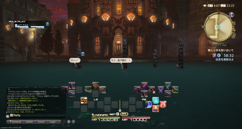 第九世界のことを調べることになった光の戦士がたまたま通った洞窟で魔物を倒したのが感謝されて、たまたま滞在中に警報が鳴ってグラシャラボラスが来たからシバいたらトレノの住民が抱える悩みは大体無くなったしクルルの身内はまだ生きてました。あまりにもキュッとされています。まるで打ち切りが決まった漫画のよう。