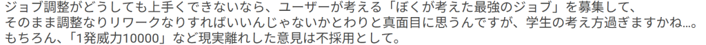 ジョブごとの難易度とその方向性