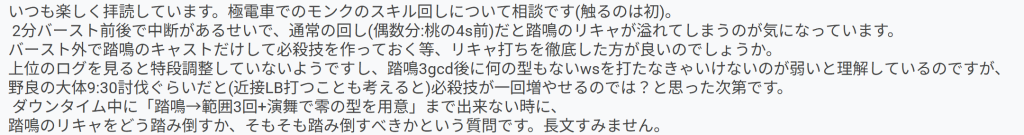 どこでGCDが止まってるかがわかったらyoutubeで同じジョブのクリア動画を見たりするのもいいかもしれません。