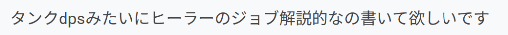 何かしらの形で出せるとは思いますが先の話になるかと思います。ただぼくのやっていることをジョブごとのマニュアルに出来ないので少し困ってます。n割くらい減る全体攻撃が詠唱中でリプとアドルが入っていてこの後ゆっくり戻せるからhotだけでいいだろうみたいな判断を毎度してるのでジョブに関する部分はあまりないです。
