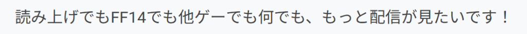 普段やってるゲームに独り言を追加してその様を配信しているというだけで、何か人を集めるとか収益を得るという目的をもっていないので死ぬほどウケてない配信に意義が無くてもいいだろうと思ってました。いたんですねこういう人・・・・・