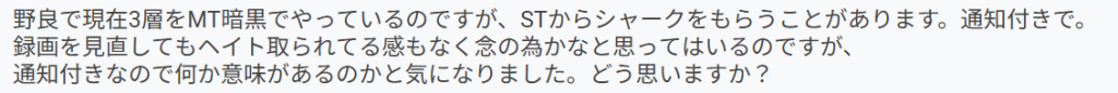 あった方がいいだろうからマクロで通知を入れてるだけの人かと思われるのでそのSTはいつどこでシャークをしても通知が出ます。深い意味はありません。