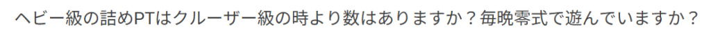 実は6.xあたりから火力詰めptに参加していません。そういうptじゃないただの野良で遊んでいます。装備が揃ってないので毎晩ではないです。
