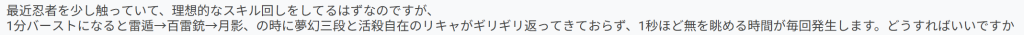 正しいかどうかはともかく何か考えがあってのことだろうし、いちいち俺につけろと説明が必要な人に納得して頂いたところで解散したら終わりなので特に何も言いません。開幕バーストが強くても付け替えるまでに稼ぐダメージは侍の方が多いよとか、基本値1の差があっても竜と侍だったら侍の方が多分いいよとか、フレに対して言うなら特に何も思わないですが野良に対しては説明して納得するかどうかがわからないのでめんどくささが勝ちます。